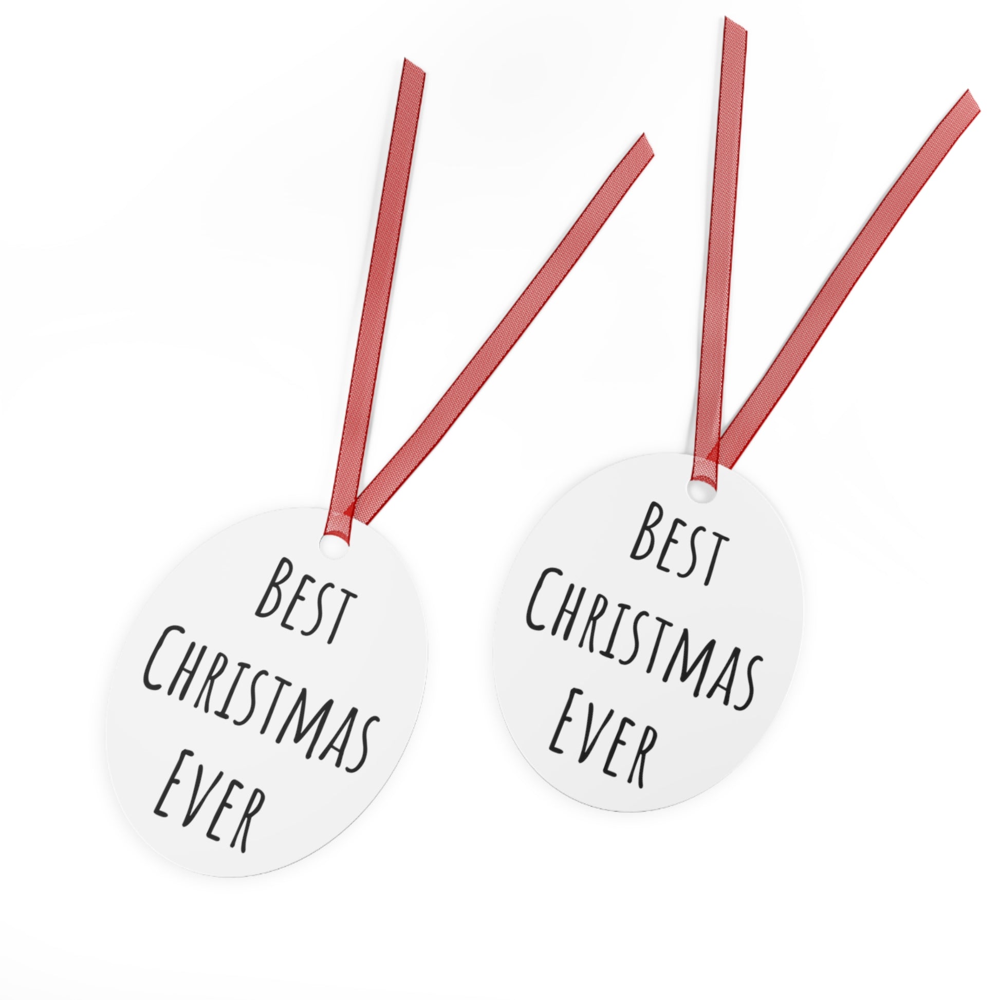 Best Christmas Ever Bell Ornament - Handcrafted Gloss White Aluminum Holiday Decor with Red Ribbon, Durable & Vibrant, Perfect for Tree, Gift, or Home Decoration