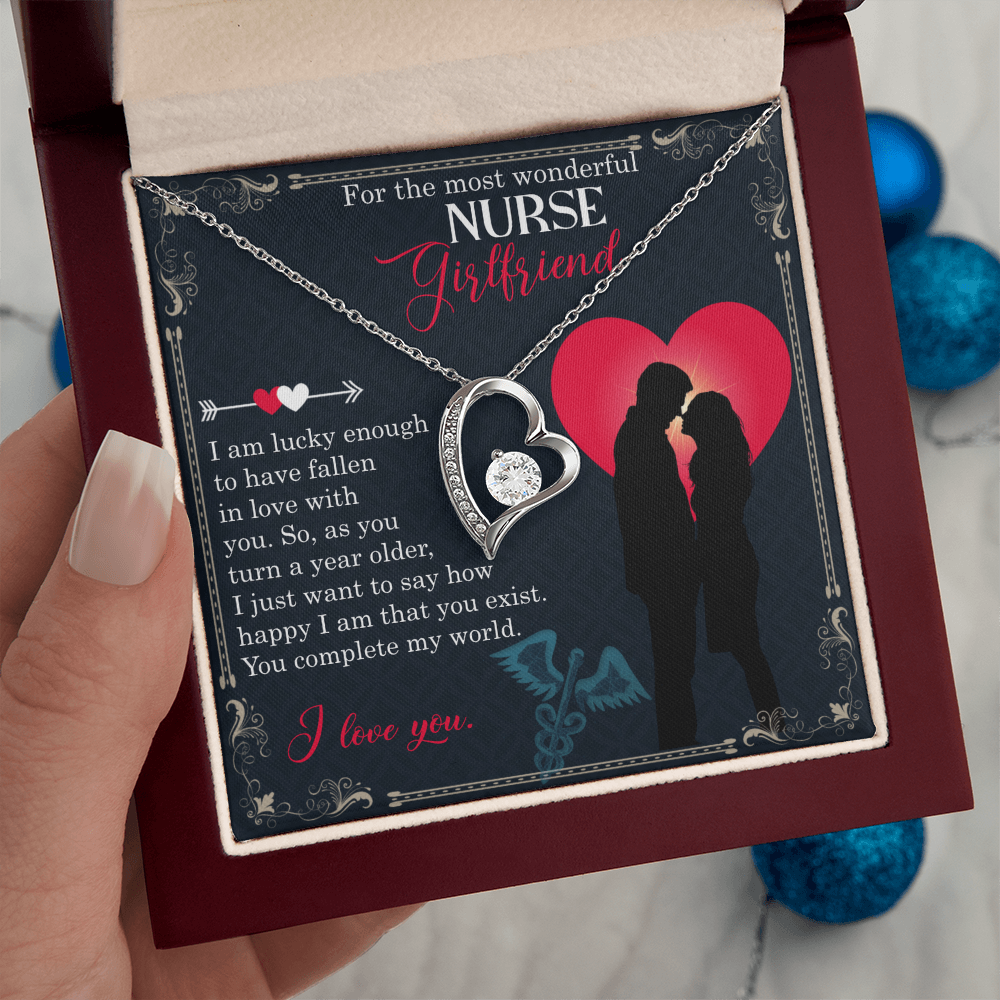 "For the most wonderful NURSE Girlfriend. I am lucky enough to have fallen in love with you. So, as you turn a year older, I just want to say how happy I am that you exist. You complete my world. I love you."