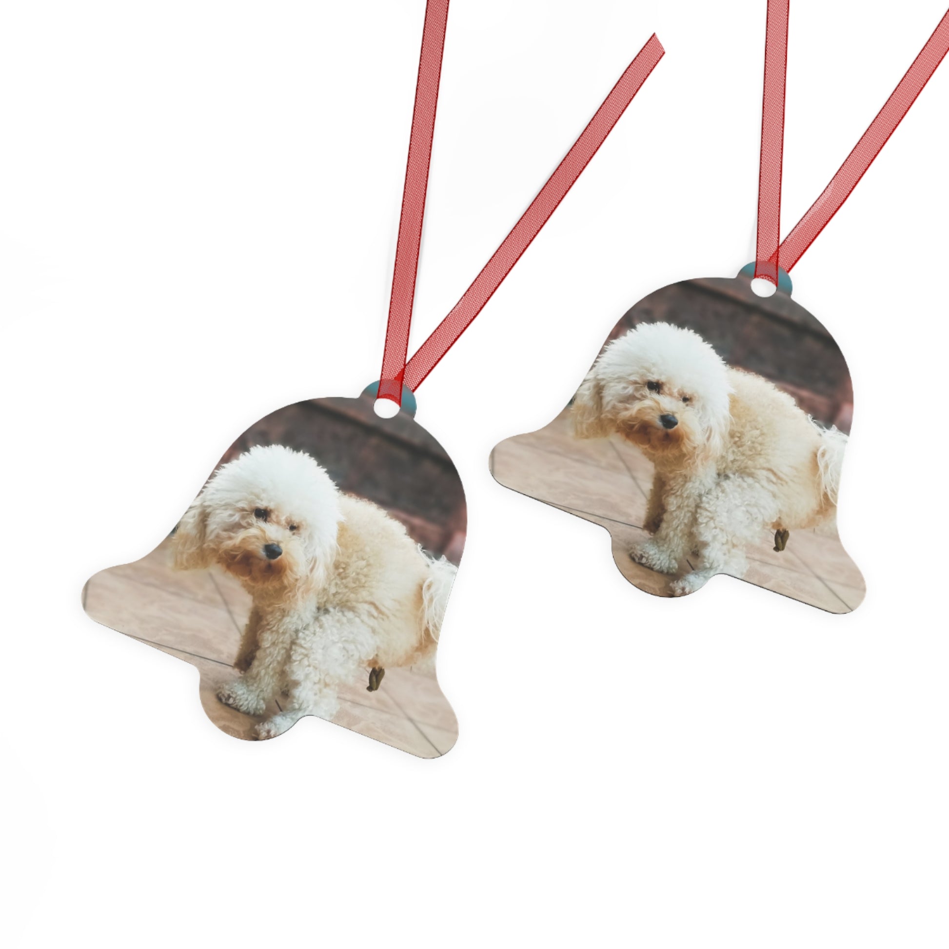 Funny Pooping Dog Bell-Shaped Ornament – Hilarious Pet Lover Christmas Decor – Metal Holiday Keepsake with Red Ribbon (Durable Aluminum, Double-Sided Printing)