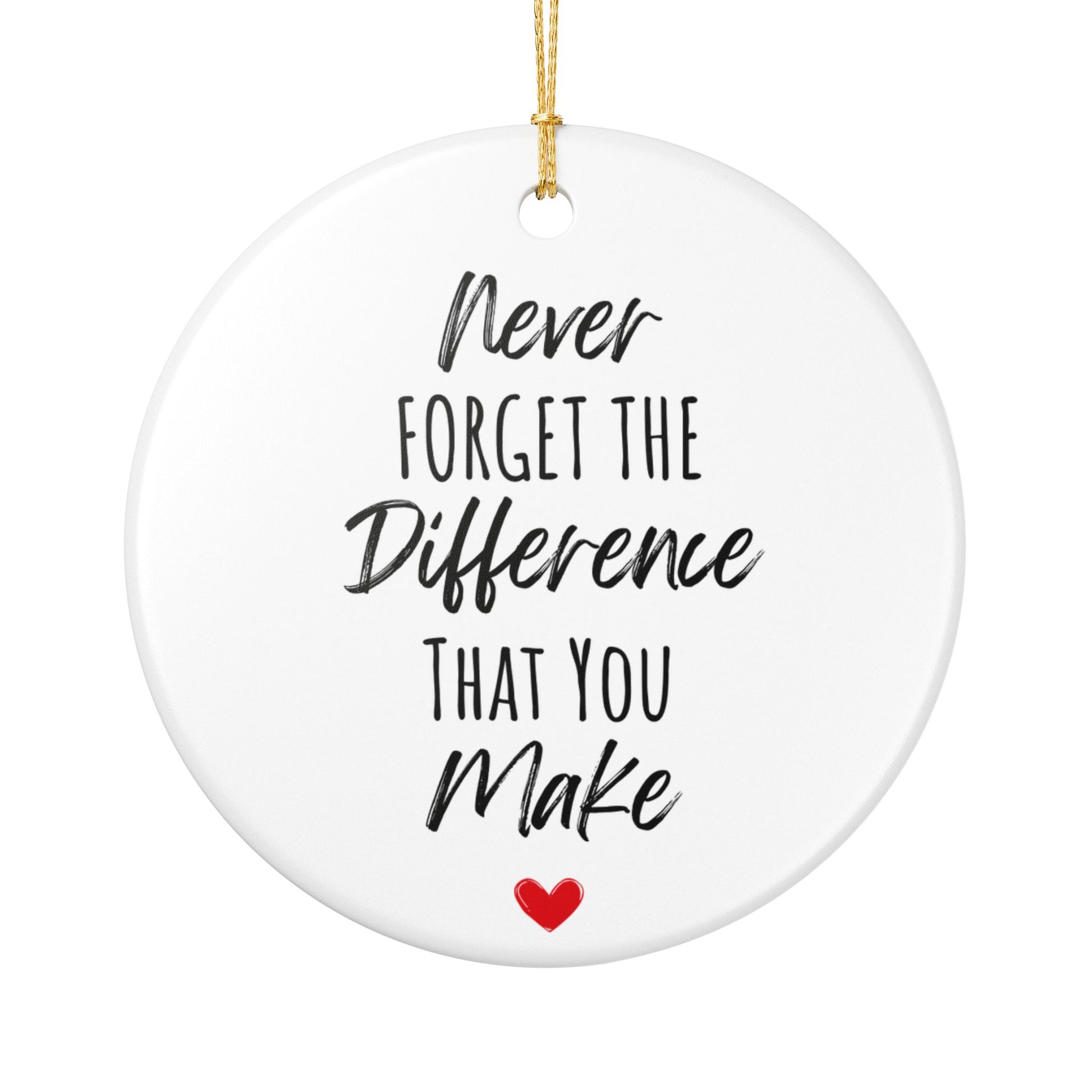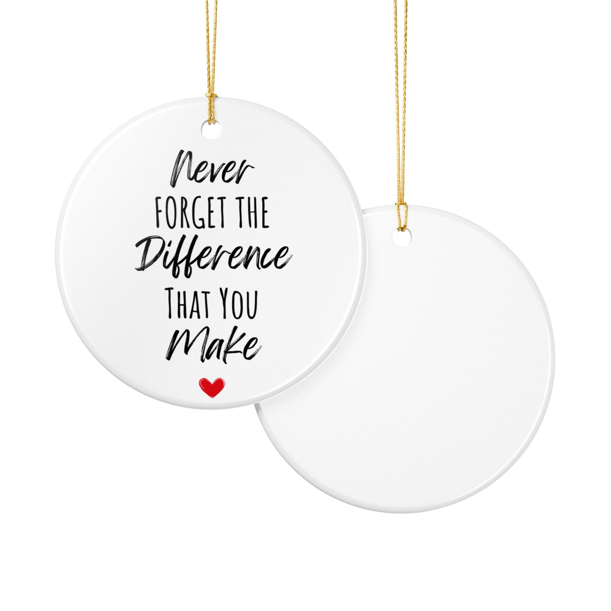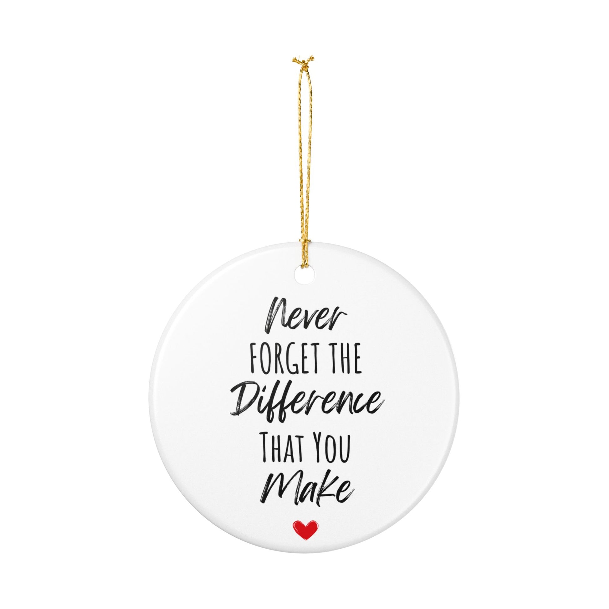 Inspirational Ceramic Ornament – "Never Forget the Difference You Make" | Heartfelt Holiday Gift & Decor | 2.8" Diameter with Gold Hanging String