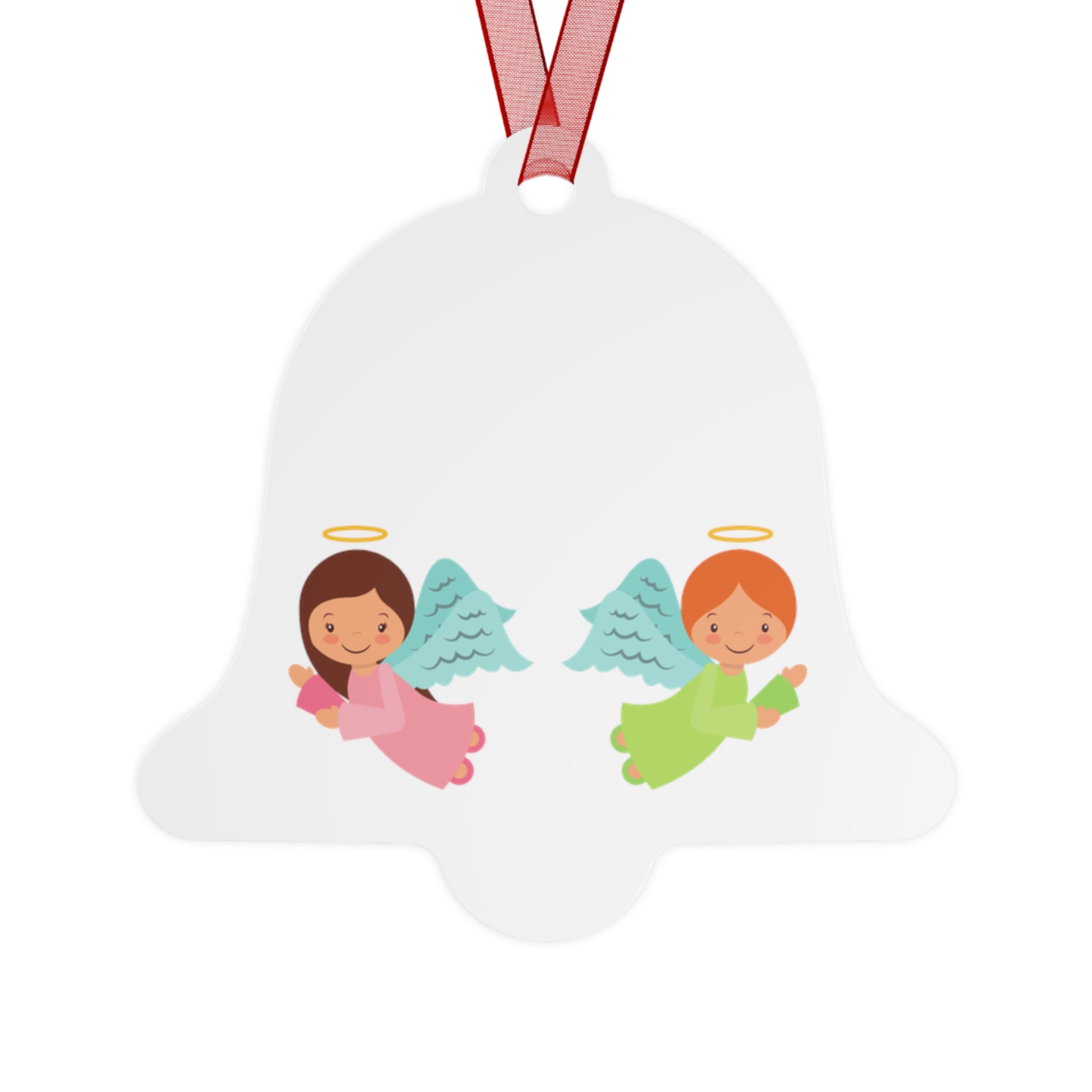Pastel Angel Ornament – Bell Shape – Hand-Painted, Durable Aluminum with Red Ribbon – Ideal Christmas Gift for Kids, Holiday Décor, or Keepsake