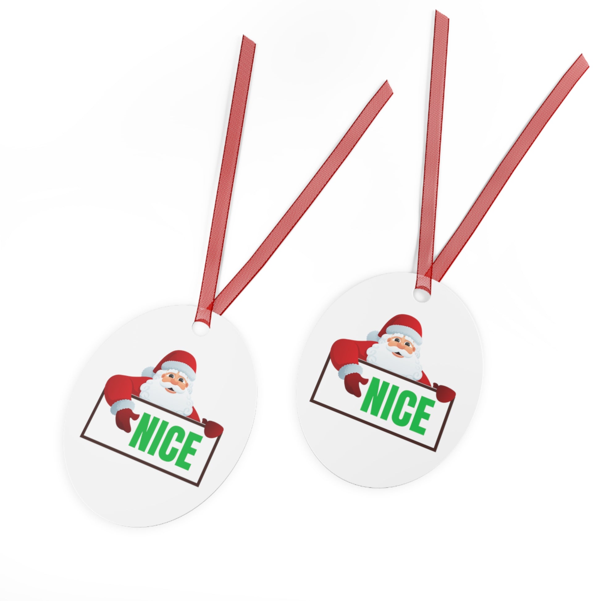 Santa NICE Metal Ornament – Funny Christmas Gift for Him or Her, Double-Sided Holiday Tree Decor
